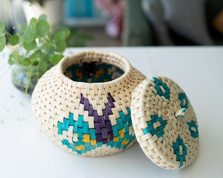 Production process: Using fine and soft strong grass, carefully woven to form the container body for storage. During the production process, attention is paid to details such as the trimming of the can mouth and the texture decoration of the can body, making the storage can more exquisite and beautiful. At the same time, it can also be paired with wooden or ceramic lids to increase the practicality and aesthetics of storage cans.